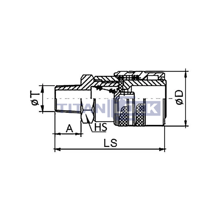 БРС серии D TL4DFS-B TITAN LOCK - это пневматическая розетка, которая необходима для перекачки воздуха, воздуха с капельками масла и его производных, а также различных жидкостей.