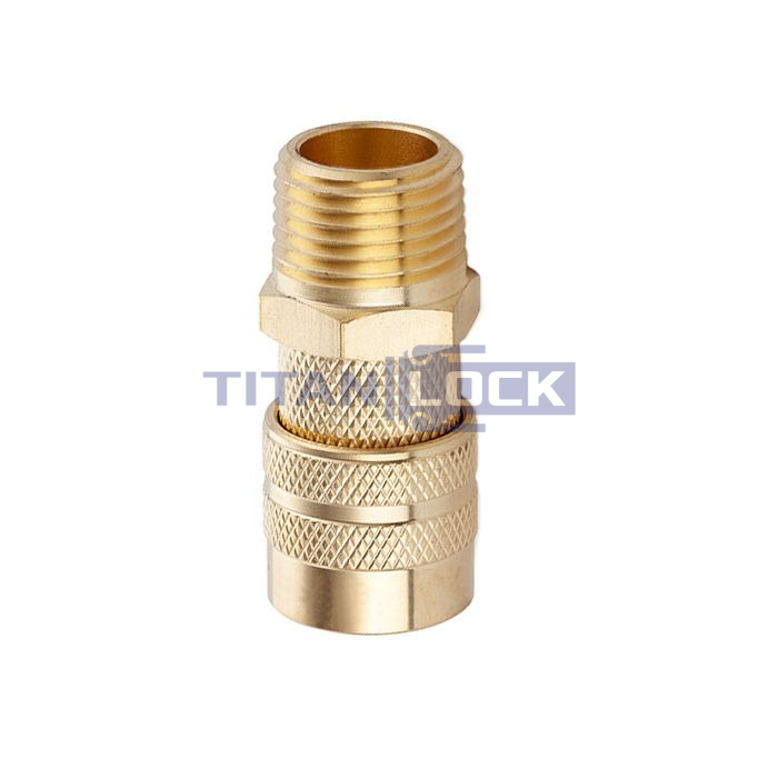 Соединение типа "розетка" ("мама") с наружным типом резьбы. Фиксация происходит за счет шарикового затвора.