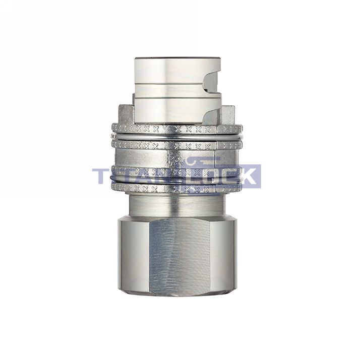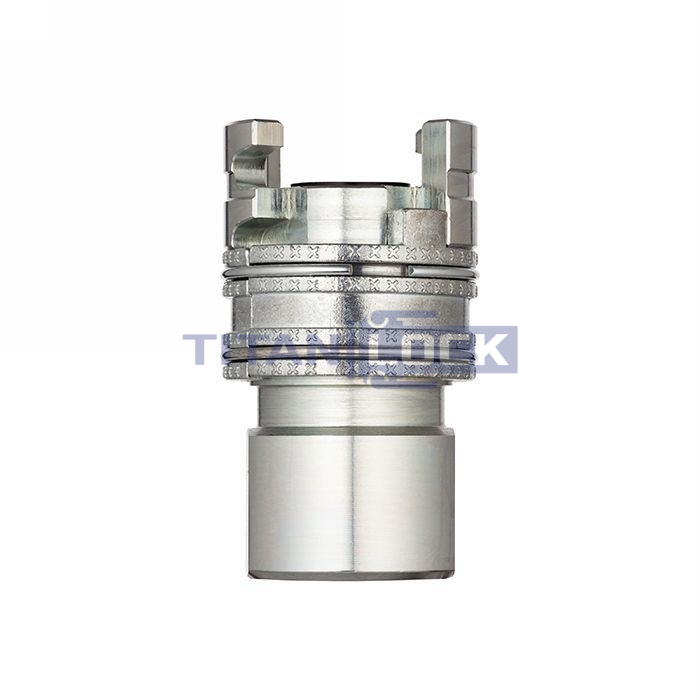 БРС серия P (Thor) TLPSF8 TITAN LOCK - это пневматическое соединение для передачи жидкостей, воздуха, воздуха с масляными вкраплениями и их производными. Соединение типа "розетка" ("мама") с внутренней резьбой NPT. Полная комплектация соединения представлена в качестве БРС серии P "папа" и БРС серии P "мама". Фиксация элементов происходит за счет шарикового затвора.