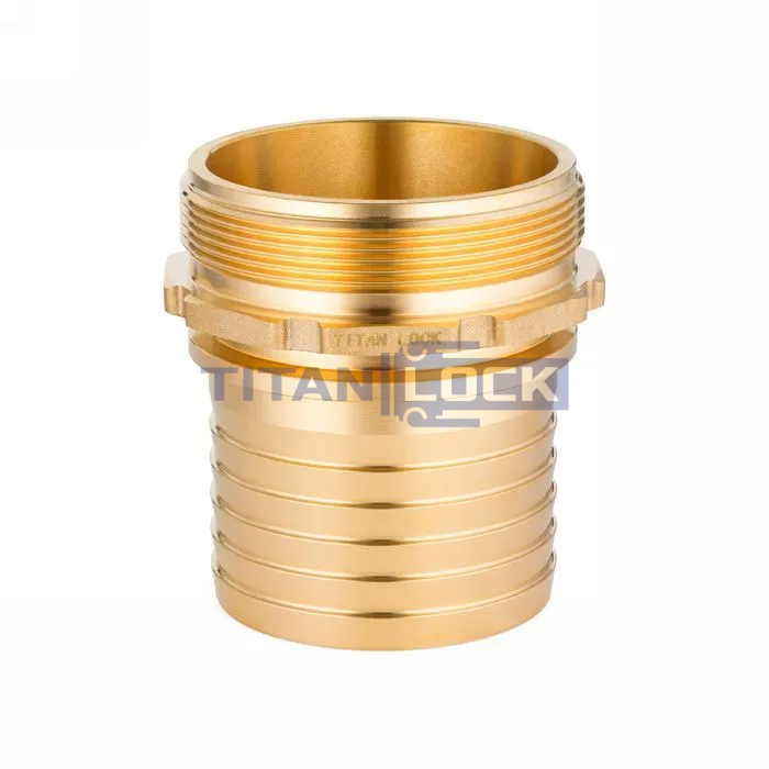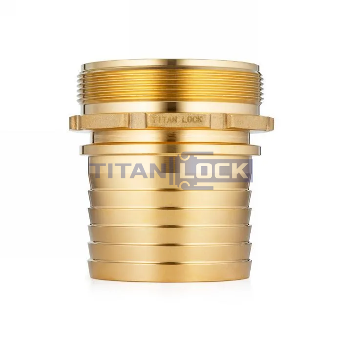 Штуцер DIN2818 с наружной резьбой TLSM50BR TITAN LOCK из латуни имеет буртик для зацепления к 4-х болтовым хомутам DIN 2817 и хвостовик под шланг.
