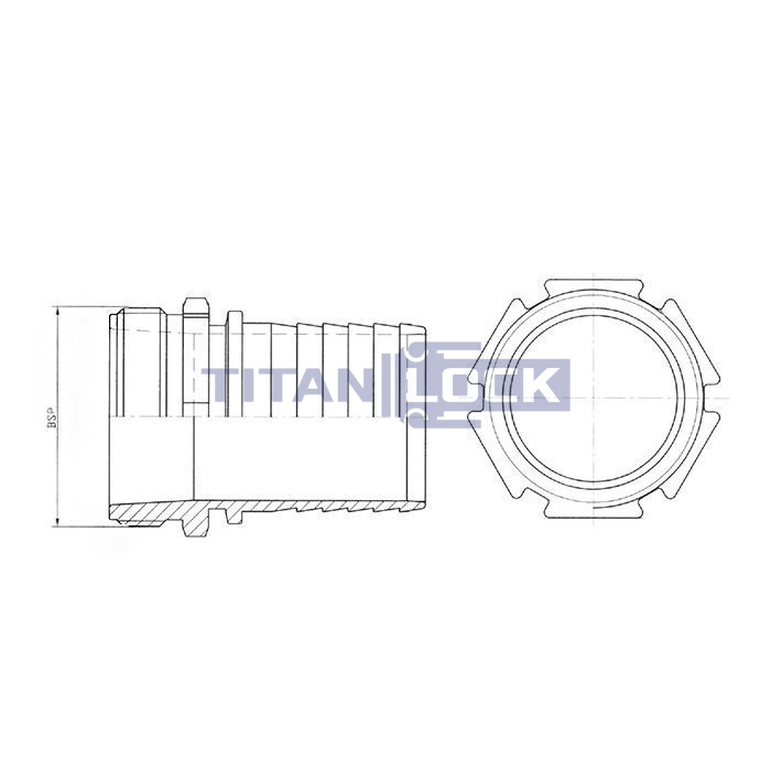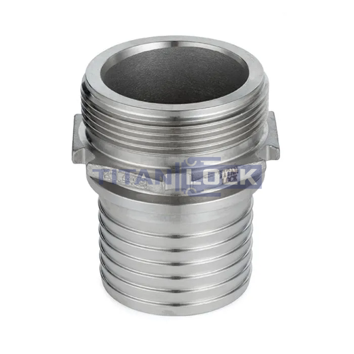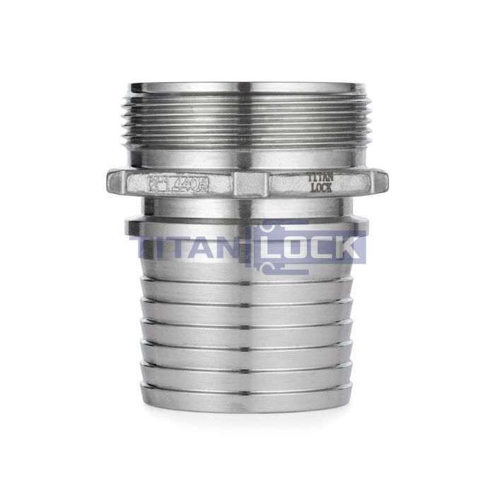 Штуцер DIN2818 с наружной резьбой TLSM80SS TITAN LOCK из нержавеющей стали имеет буртик для зацепления к 4-х болтовым хомутам DIN 2817 и хвостовик под шланг.