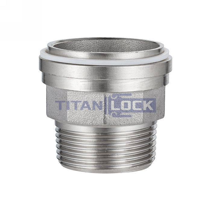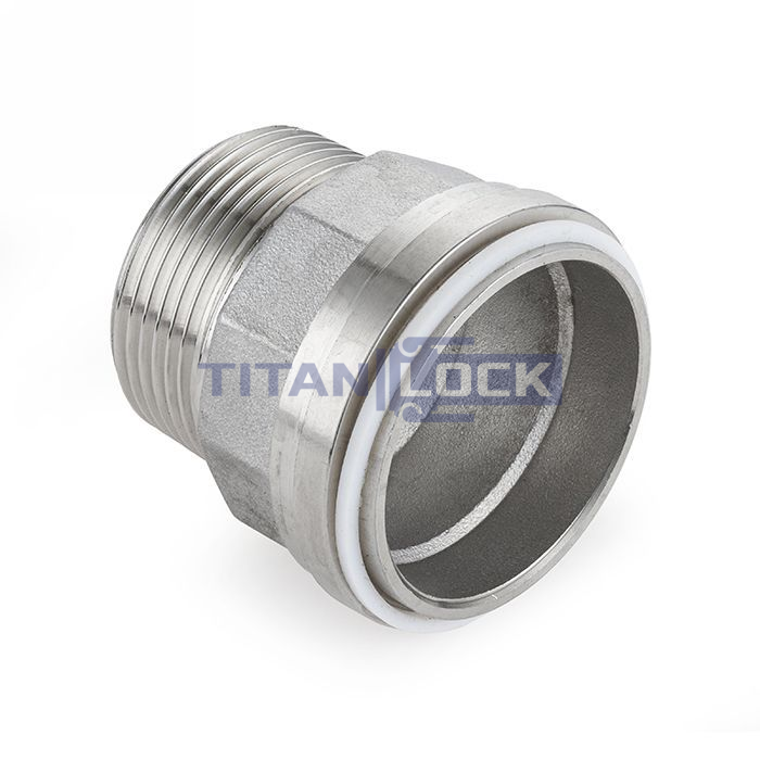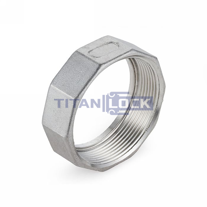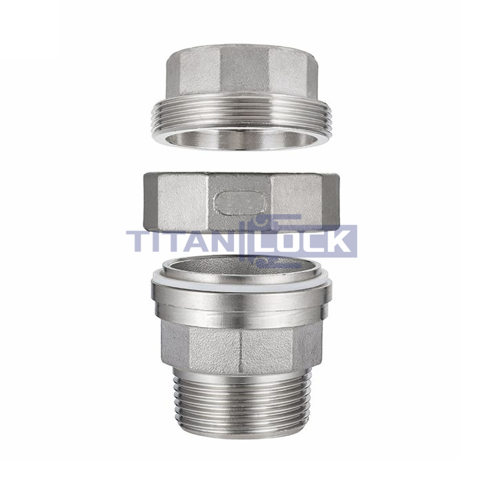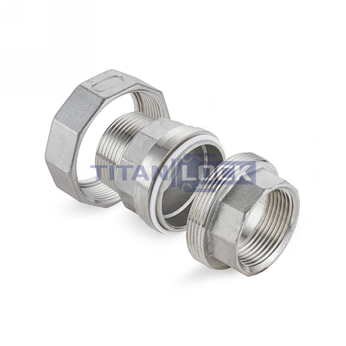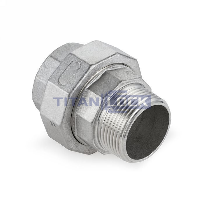 Соединительный фитинг типа американка из нержавеющей стали AISI 304 ВР/HР TL2UFM TITAN LOCK — это резьбовая монтажная разъемная муфта с накидной гайкой и внутренней трубной резьбой BSP на одном конце и наружной на другом.