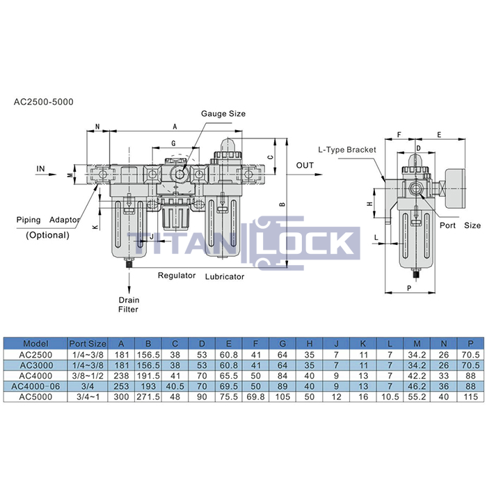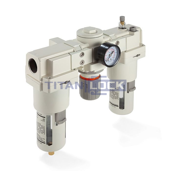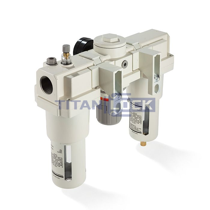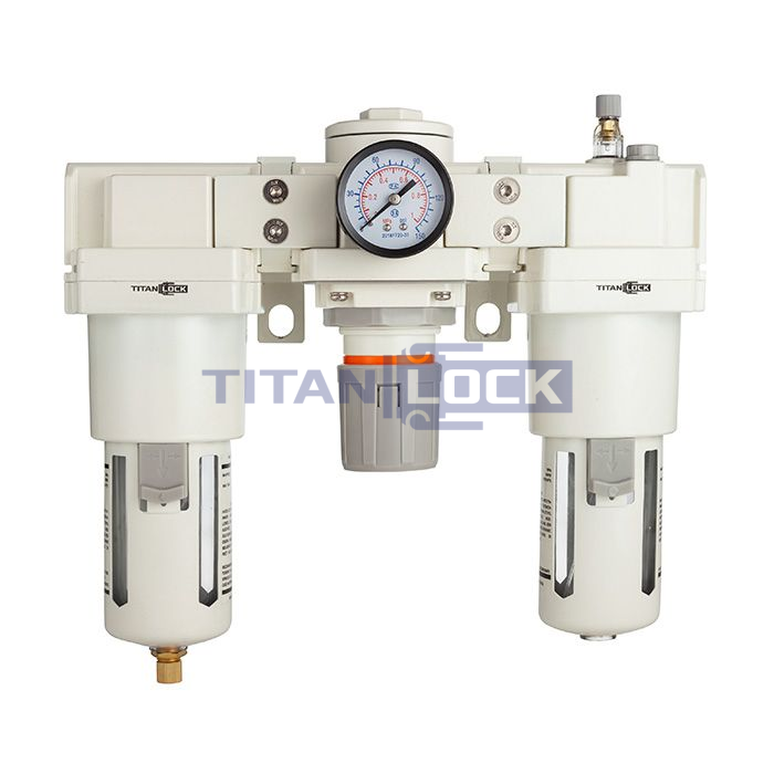 Блок подготовки воздуха TLP-AC4000-06 TITAN LOCK состоит из фильтра-влагоотделителя с регулятором давления в одном корпусе, лубрикатора (маслораспылителя) и крепежной консоли.