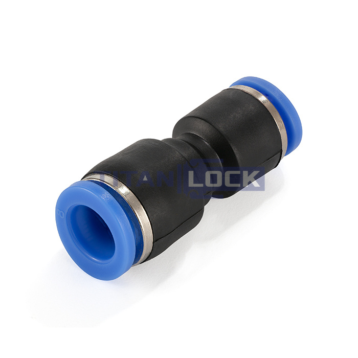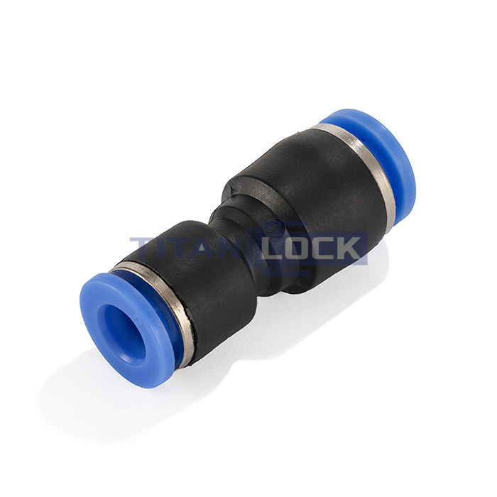 Пневматический фитинг TLP-PG12-18 TITAN LOCK типа PG (трубка-трубка) — это прямой фитинг-переходник с цанговыми соединениями с обеих сторон, позволяющий соединять две трубки разного диаметра.