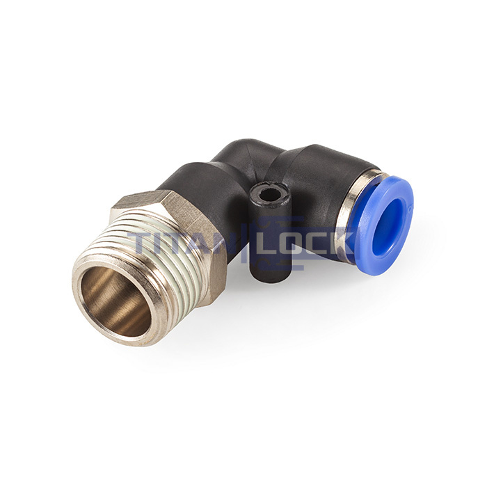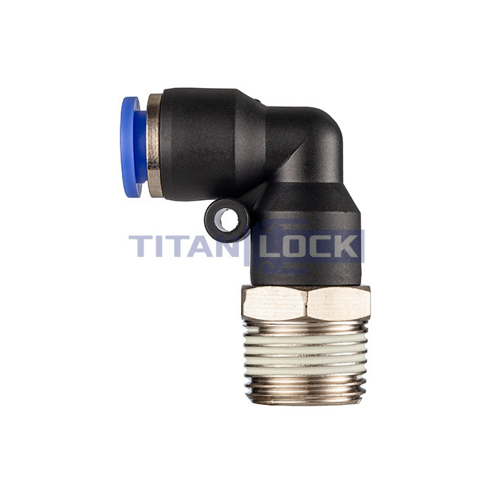Фитинг угловой L-образный TLP-PL12-01 TITAN LOCK с наружной резьбой типа PL имеет с одной стороны цанговое соединение, а с другой наружную резьбу.
