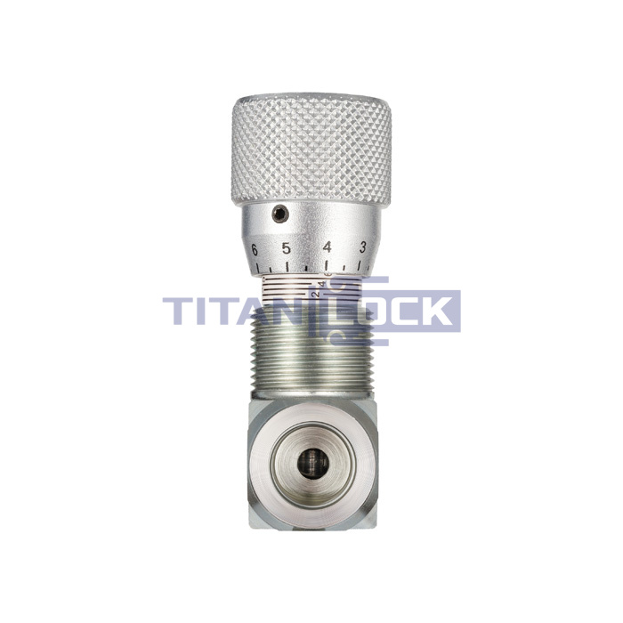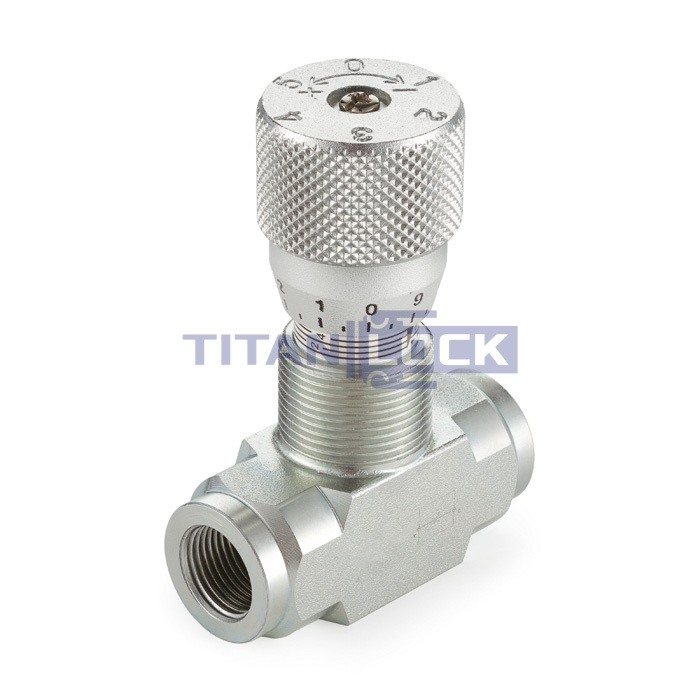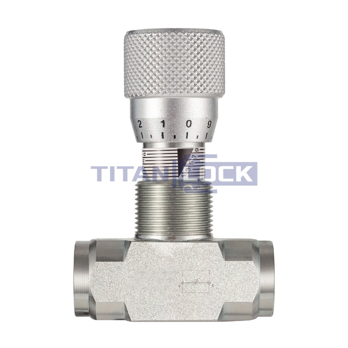 Гидравлический дроссель двунаправленный TL2WHT1FF TITAN LOCK используется в гидравлических линиях под высоким давлением для регулировки скорости потока рабочей жидкости в двух направлениях.
