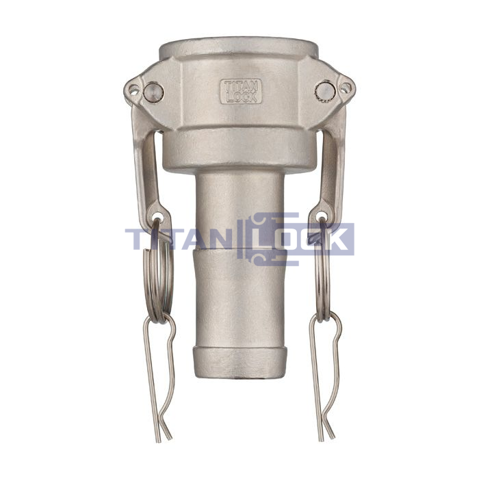 Камлок нержавеющий тип C из стали марки AISI 316 TL250CSS316 TITAN LOCK — это приемная часть (розетка "мама") кулачкового соединения Camlock с хвостовиком ("елочкой") под рукав.