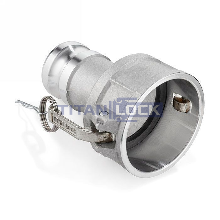 Камлок-переходник из нержавеющей стали AISI 304 TL4020DASS TITAN LOCK тип DA представляет собой стыковочное соединение, составленное с одной стороны из приемной части (розетка, "мама"), а со второй стороны из ответной части (ниппель, "папа") кулачкового соединения Camlock одного или разных проходных диаметров.