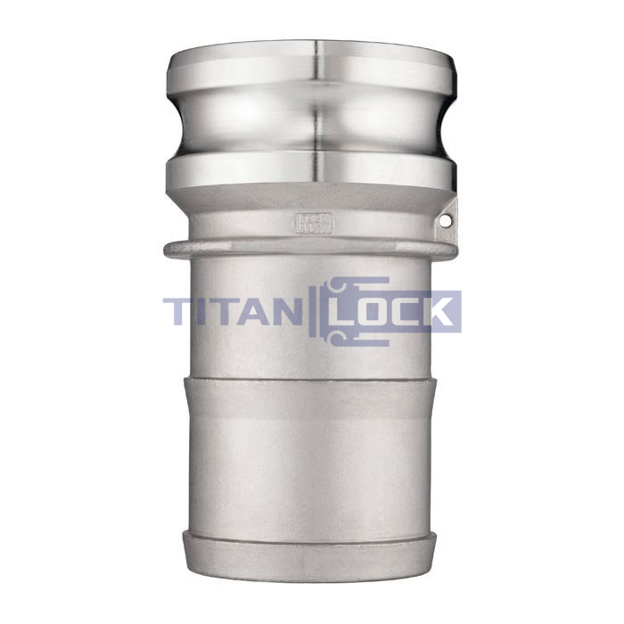 Камлок нержавеющий тип E из стали марки AISI 316 TL250ESS316 TITAN LOCK представляет собой ответную часть (ниппель "папа") кулачкового соединения Camlock с "елочкой" (хвостовиком) под рукав.