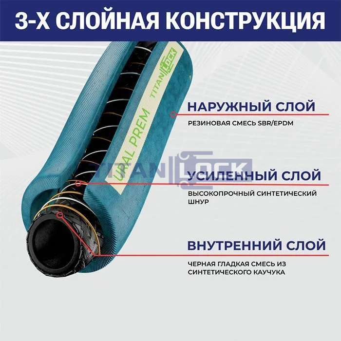Химостойкий рукав «URAL-PREM», внутр. диам. 32мм, -40С, 16bar, UHMWPE, нап/всас TL032UR-PR TITAN LOCK |