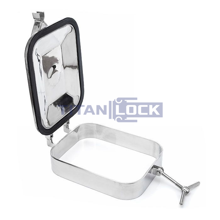 Люк прямоугольный нержавеющий TLTR53X43SP TITAN LOCK с горизонтальным открытием предназначен для обеспечения удобного доступа в емкости и резервуары. Они позволяют осуществлять загрузку, контролировать процесс производства, проводить технический ремонт и осмотр состояния внутренних поверхностей.
