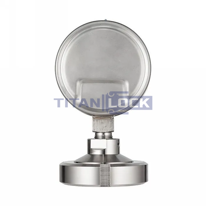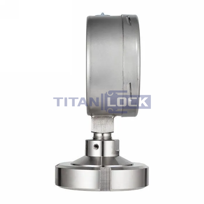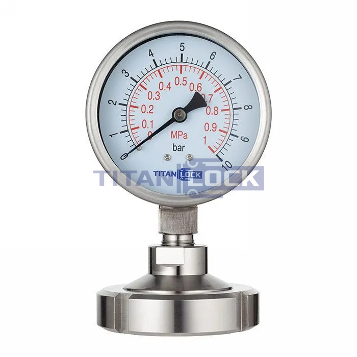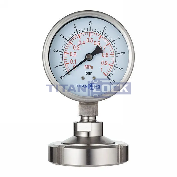 Манометр с мембранным разделителем TLSPG65/150MN TITAN LOCK используется для контроля за давлением в системе, где присутствует агрессивная или загрязненная среда. Он состоит из нержавеющего корпуса, измерительной шкалы и нержавеющей мембраны, разделяющей рабочую среду и чувствительный элемент манометра.