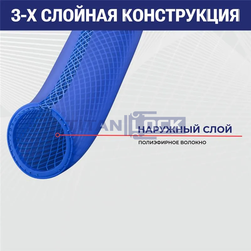 Маслобензостойкий напорный ПВХ рукав KASPIY TL038KS TITAN LOCK представляет собой шланг из поливинилхлорида синего цвета, усиленный синтетической нитью.