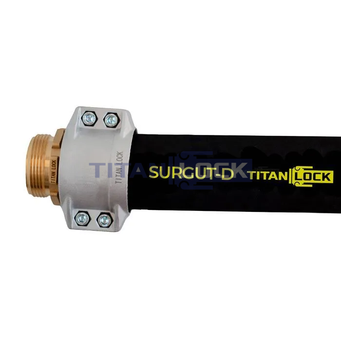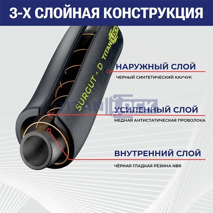 Маслобензостойкий напорный рукав SURGUT-D TL025SR-D TITAN LOCK изготовлен из резины NBR черного цвета.