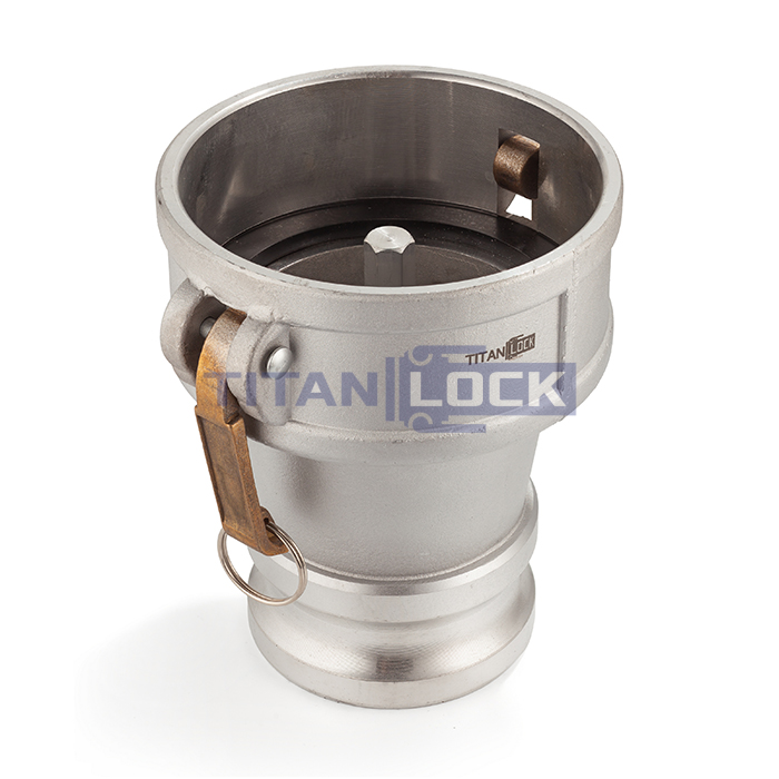 Муфта для клапана отвода паров TL4030DAVR-AL TITAN LOCK из алюминия имеет шток для стыковки с клапаном отвода паров размером 4 дюйма и соединительную часть под камлок размером 3 дюйма. Тип соединения - мама для клапана.