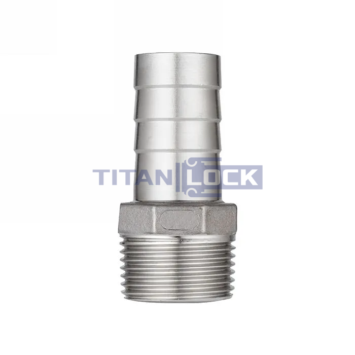 Ниппель для шланга из нержавеющей стали AISI 304 НР TL075HTM TITAN LOCK — это резьбовой штуцер с наружной трубной резьбой BSP и хвостовиком "елочка" для присоединения к рукаву.