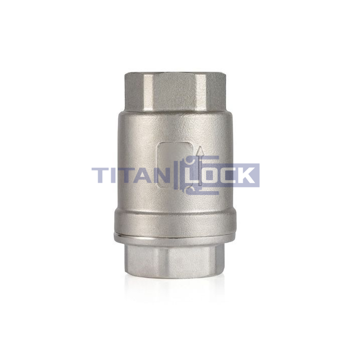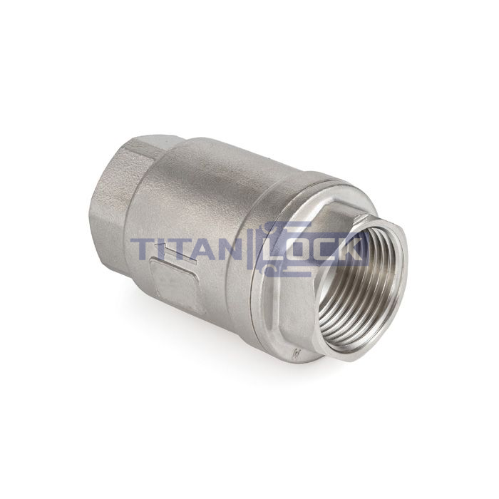 Обратный клапан муфтовый TL2FCV TITAN LOCK - это вид защитной трубопроводной арматуры прямого действия. Предназначен для предотвращения обратного потока рабочей среды в трубопроводе. Запорный клапан срабатывает автоматически под действием движения рабочей среды в трубопроводе - при изменении направления движения в обратную сторону клапан герметично закрывает проход, не допуская протечку.