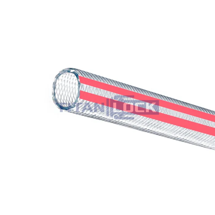 Пищевой напорный прозрачный ПВХ рукав NEVA-PREM TL010NV-PR TITAN LOCK для питьевой воды и напитков армирован переплетенными синтетическими нитями.