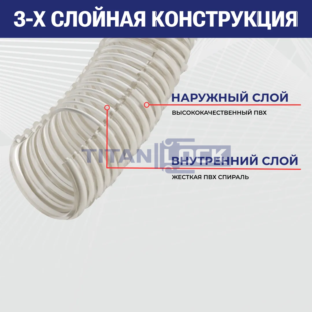Изготовлен из прозрачного ПВХ с жесткой ПВХ спиралью, гладкая внутренняя и слегка ребристая внешняя поверхность, без пластификатора.
