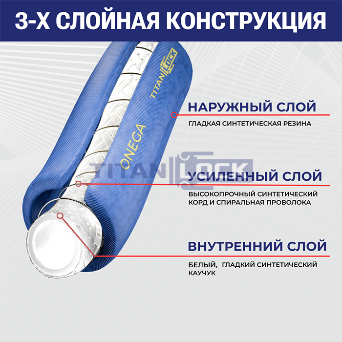 Пищевой рукав ONEGA TL020ON TITAN LOCK относится к напорно-всасывающим рукавам и используется для транспортировки продуктов питания.