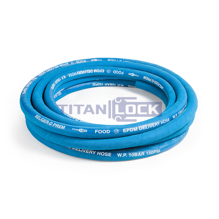 Напорный пищевой рукав SELIGER-D-PREM бренда TITAN LOCK применяется для подачи таких продуктов питания, как: кисломолочные напитки, соки, слабоалкогольные и газированные напитки и реже для масложировой продукции.