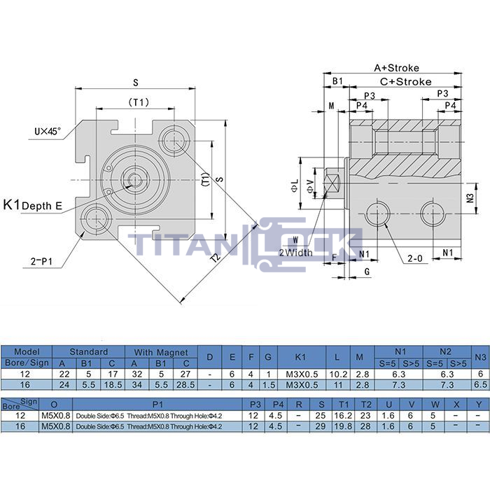 Компактный пневматический цилиндр TLP-PC16X40SDA TITAN LOCK серии SDA состоит из компактного и герметичного корпуса, называемого гильзой, технически оснащенного сложными механизмами.