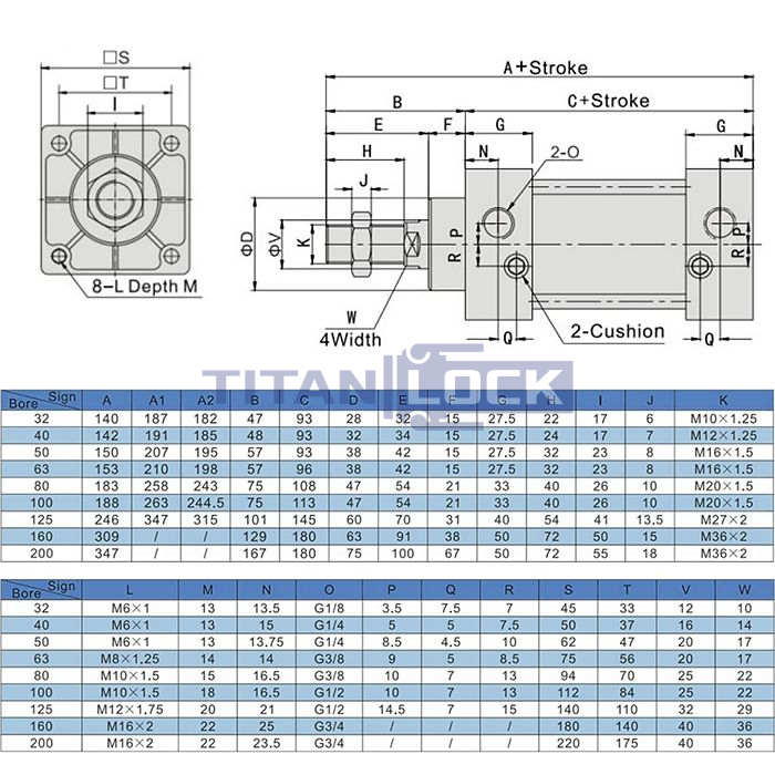 Пневматический цилиндр TLP-PC63X50SC TITAN LOCK серии SC – это пневмоцилиндр двустороннего действия с односторонним штоком.