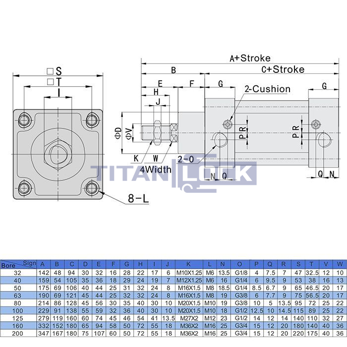 Пневмоцилиндр TLP-PC180X50SI TITAN LOCK серии SI соответствует стандарту ISO 15552.