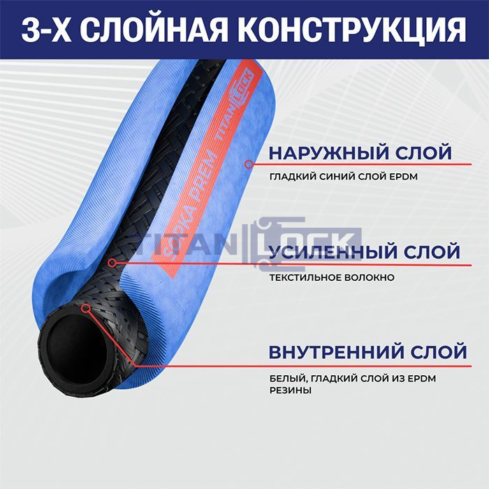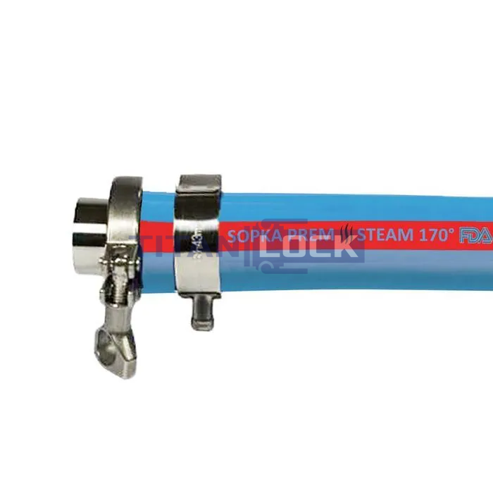 Напорный пищевой рукав для пара и горячей воды SOPKA-PREM TL013SP-PR TITAN LOCK имеет внутренний слой из гладкого белого каучука EPDM.