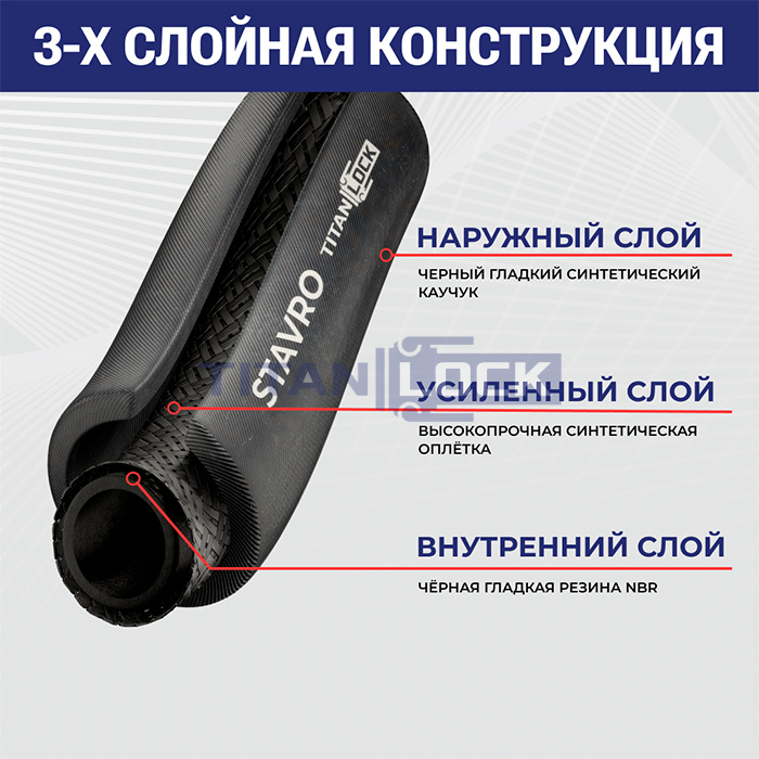 Рукав напорный "STAVRO" TL016SV TITAN LOCK применяется для транспортировки воды или воздуха в различных сферах промышленности.