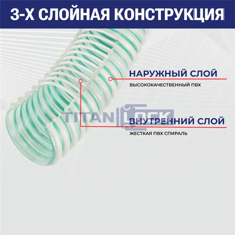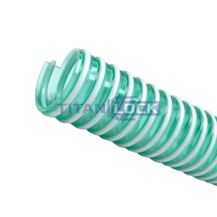 Рукав ПВХ для систем полива и сельскохозяйственных работ LOTUS TL100LT TITAN LOCK состоит из зеленого прозрачного ПВХ и усиления в виде жёсткой белой ПВХ спирали. Толщина стенок рукава увеличена, наружная поверхность гофрированная.