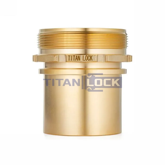 Штуцер DIN2818 с наружной резьбой TLSM13BR-SE TITAN LOCK из латуни имеет буртик для зацепления к 4-х болтовым хомутам DIN 2817 и гладкий хвостовик под шланг.
