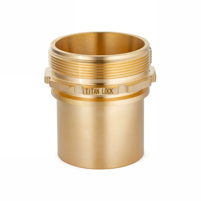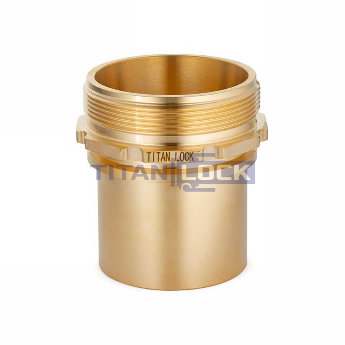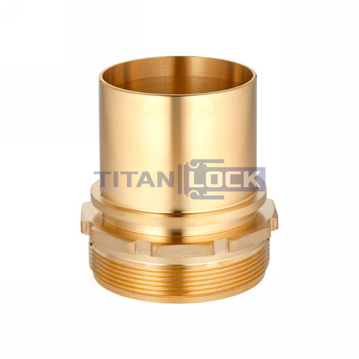 Штуцер DIN2818 с наружной резьбой TLSM65BR-SE TITAN LOCK из латуни имеет буртик для зацепления к 4-х болтовым хомутам DIN 2817 и гладкий хвостовик под шланг.