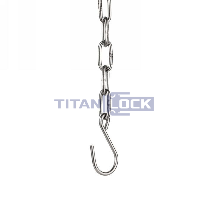 Цепь с S-образными крючками для соединения Camlock TLCHAIN12SS-H TITAN LOCK имеет длину 300 мм, изготовлена из нержавеющей стали AISI 304.