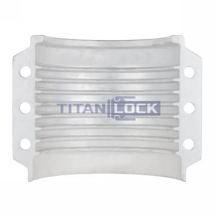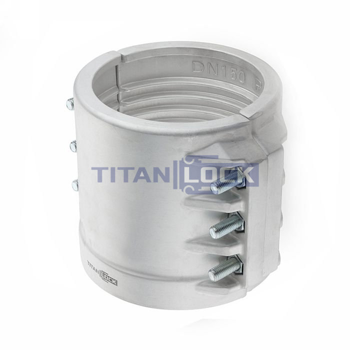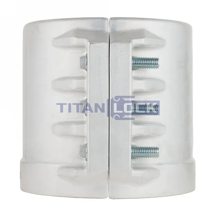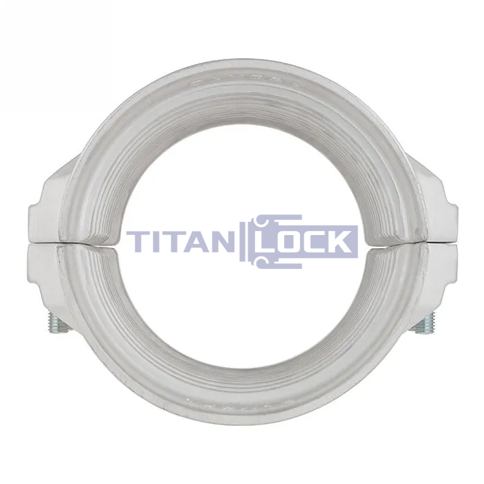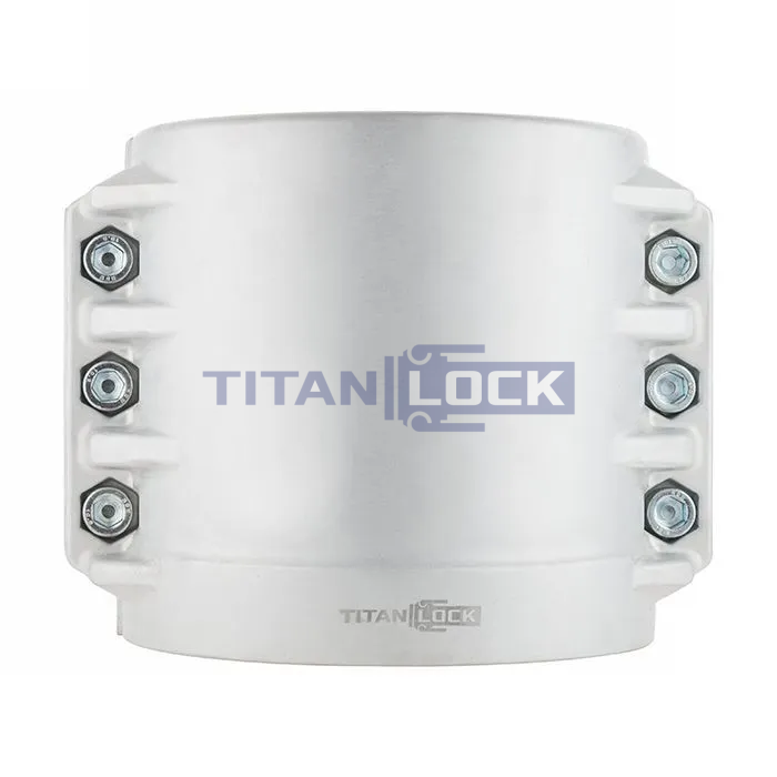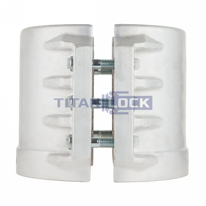 Четырехболтовый хомут TL150Х10AL TITAN LOCK состоит из двух частей, которые соединяются и зажимаются между собой четырьмя болтами.