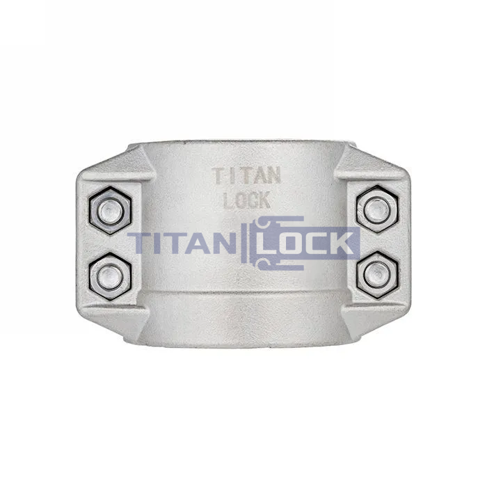 Четырехболтовый хомут TL19Х6AL TITAN LOCKсостоит из двух частей, которые соединяются и зажимаются между собой четырьмя болтами.