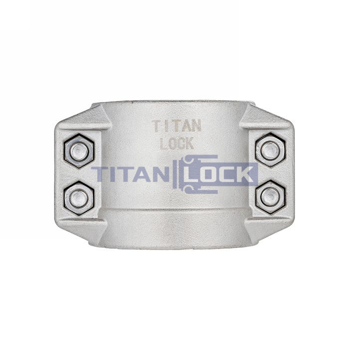Четырехболтовый хомут TL50Х8AL TITAN LOCKсостоит из двух частей, которые соединяются и зажимаются между собой четырьмя болтами.