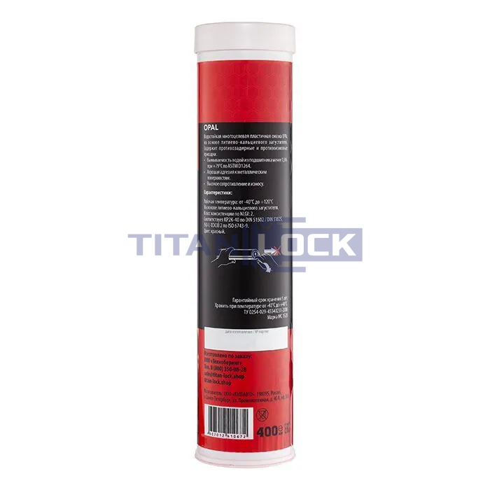 Смазка OPAL TLGREASE-OL04 TITAN LOCK – многоцелевая пластичная смазка на основе литиево-кальциевого загустителя. Cодержит противозадирные и противоизносные присадки. Обладает водостойкостью.