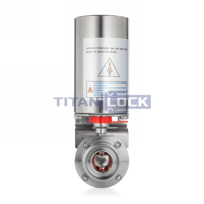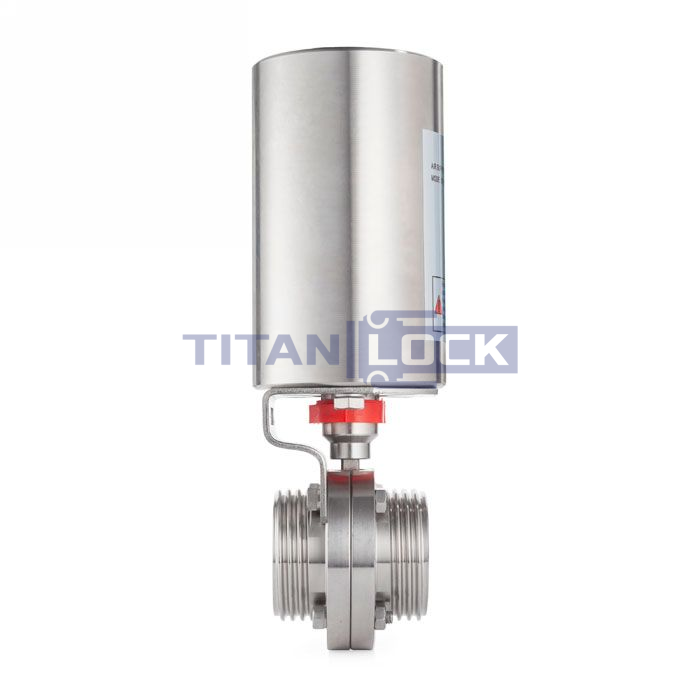 Затвор дисковый нержавеющий с пневмоприводом (пищевой затвор "бабочка") TLSD40THS-T TITAN LOCK предназначен для регулировки и перекрытия потока передаваемой среды в трубопроводной системе.